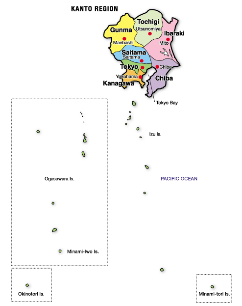 Kanto is een regio op het grootste hoofdeiland (Honshu) van Japan en wordt vertaald als “oostelijke grens.” Deze regio bestaat uit één metropool en zes prefecturen: Tokyo, Gunma, Tochigi, Ibaraki, Saitama, Chiba en Kanagawa. Kanto heeft 43,3 miljoen inwoners verspreid over 32000 km2. Kansai de daaropvolgende dichtst bevolkte regio heeft 22,5 miljoen inwoners verdeeld over een ongeveer even groot gebied.